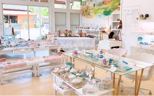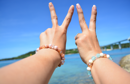 ブレスレットの輪のサイズや石の大きさを選んだり、参拝したり、店内自由に商品をご覧になったり、持ち込みも自由です。